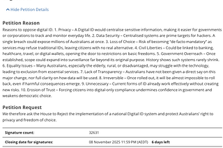 Ironic that the Australian Federal Government already knows my email address, but I was happy to be number 32,631 signing this very sensible Petition