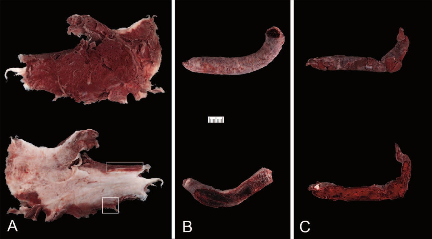 Of current interest is “Chicken Fat” Thrombi that some would describe as White. Note this material can include layering yielding a red appearance from the other side as shown in their Figure 3A.